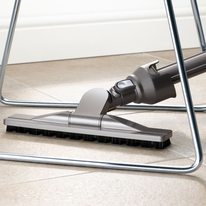 Dyson articulating hard floor tool has soft bristles to gently clean wood and other delicate floors.
